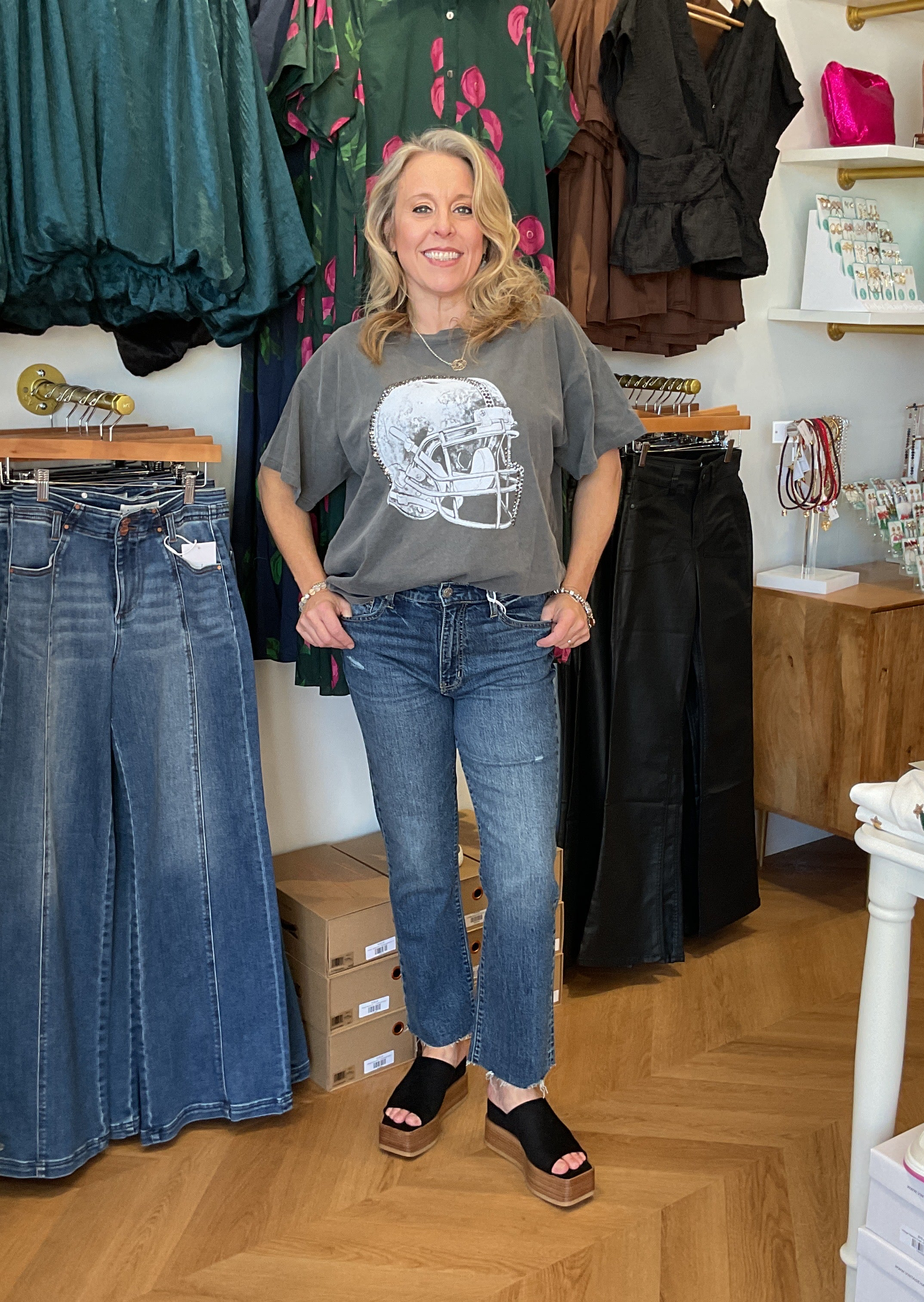 The Pleaser in Jade is our ultra-flattering high rise wide ankle in a rich green wash. Patch pockets and raw hems give this pair a utility-inspired look.