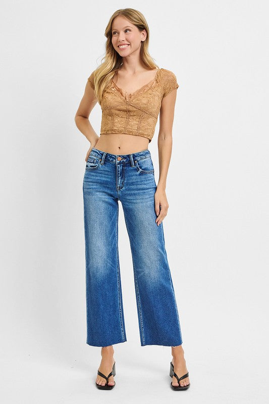TUMMY CONTROL MID RISE CROP STRAIGHT CLEAN CUT HEM JEANS - Rise 9 1/2" | Inseam 28 1/2" in size 3/26 - Model Info: Height 5'9" | Waist 24" | Hips 34" - Model is wearing size 1