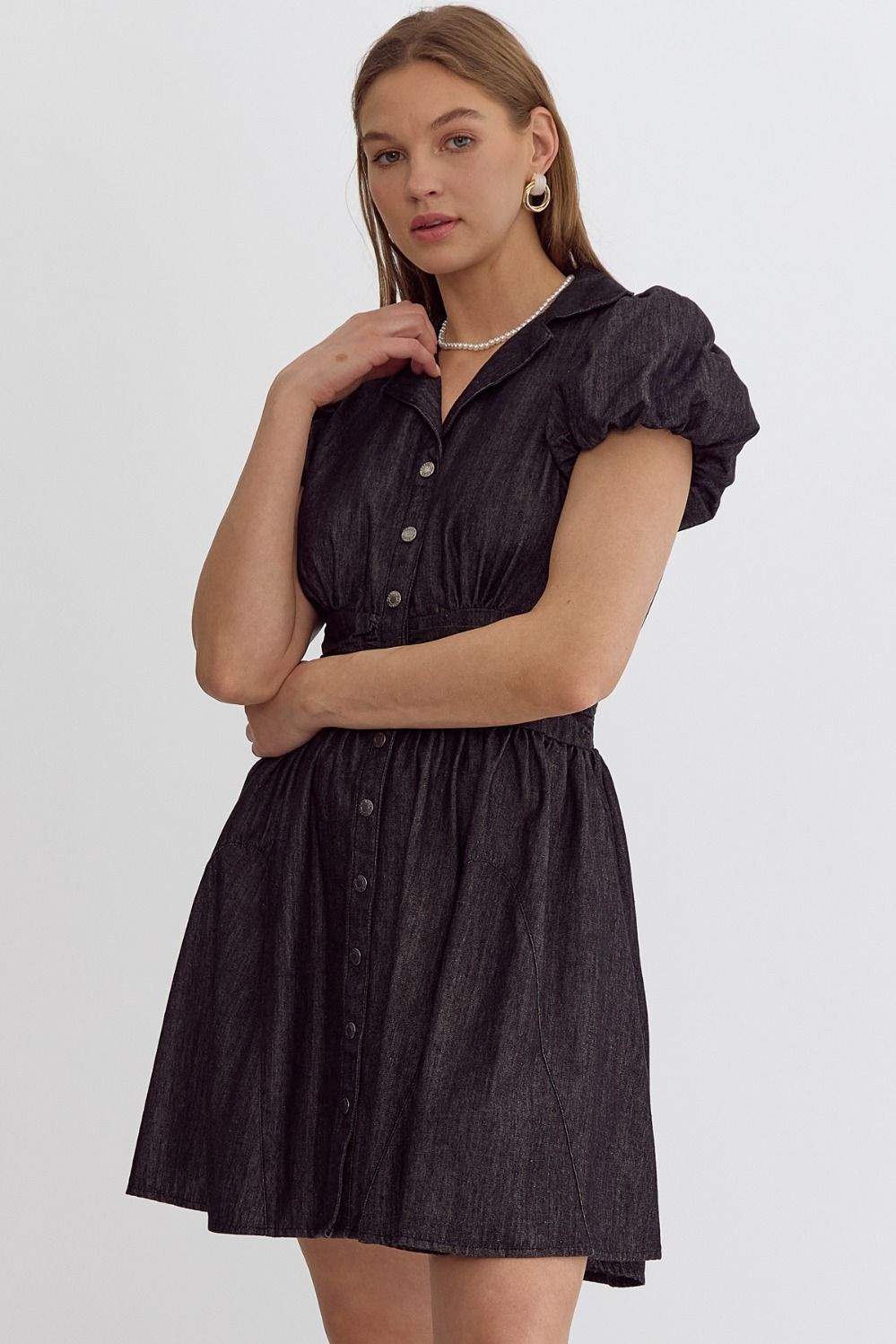 Black Denim Button Up Mini Dress