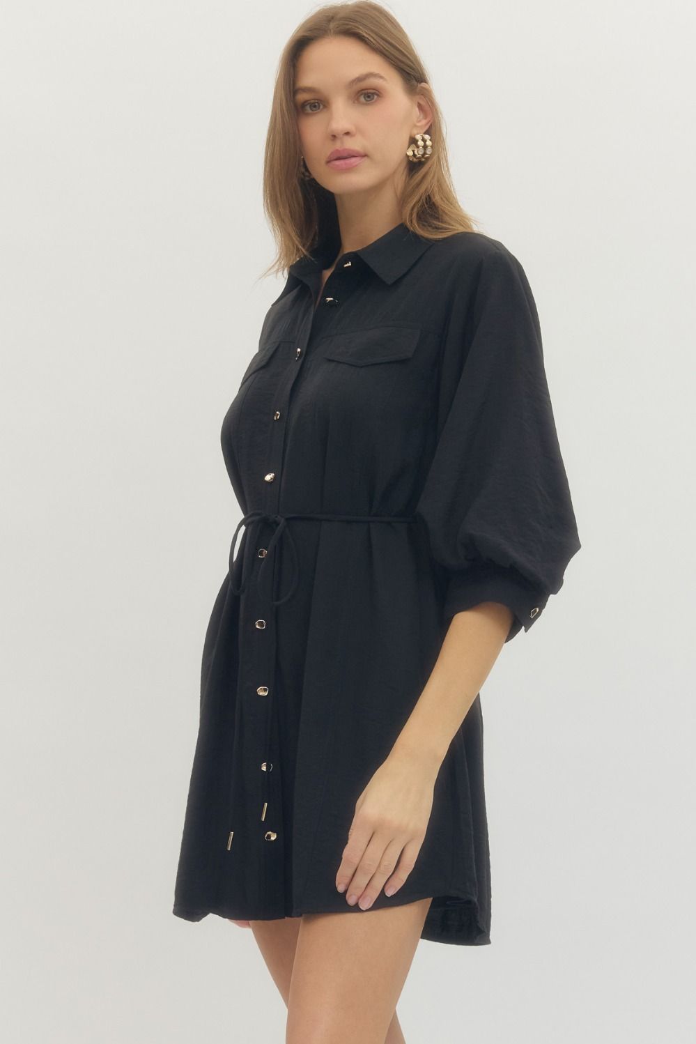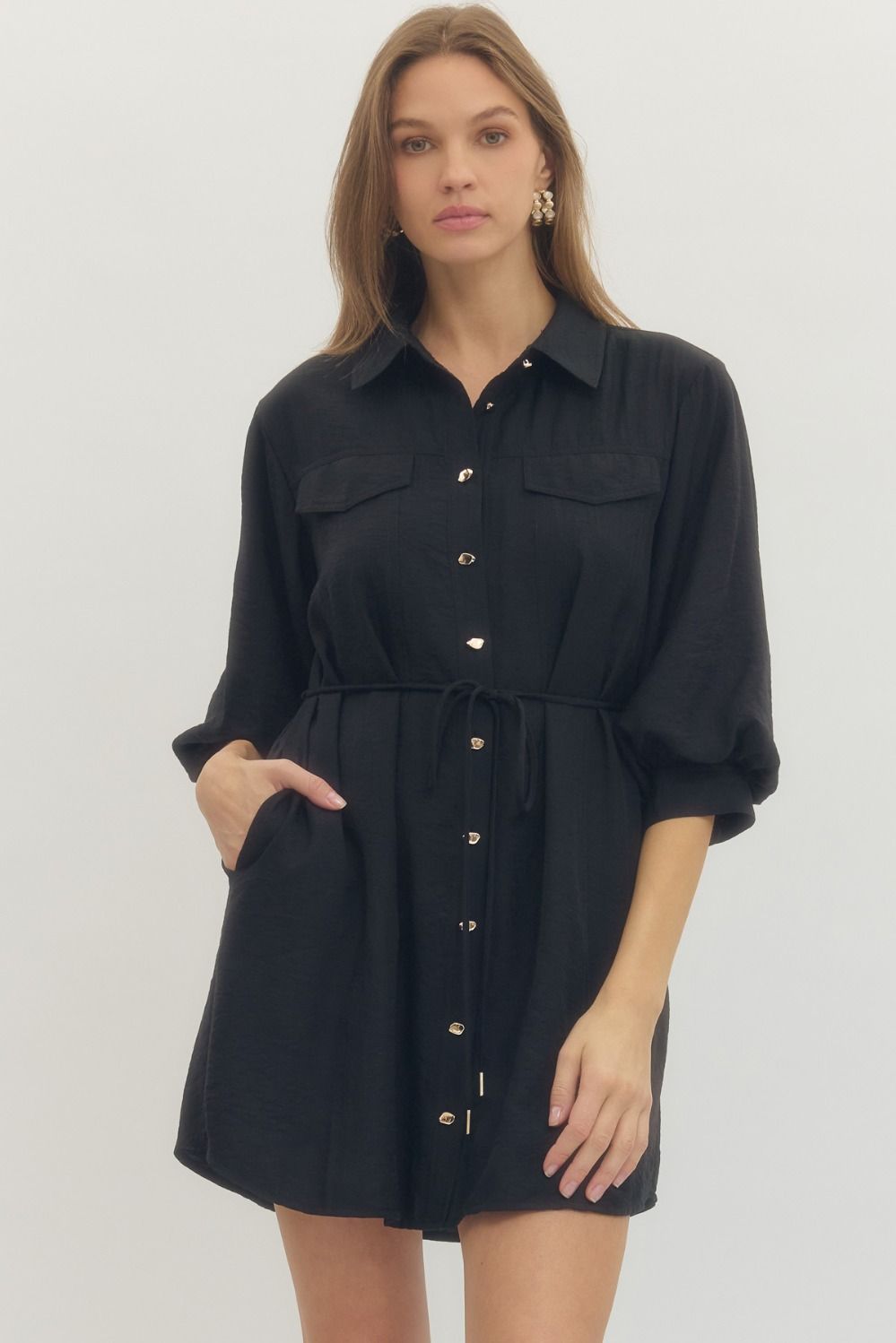 Classy Front Tie Dress w/ Gold Button Detail