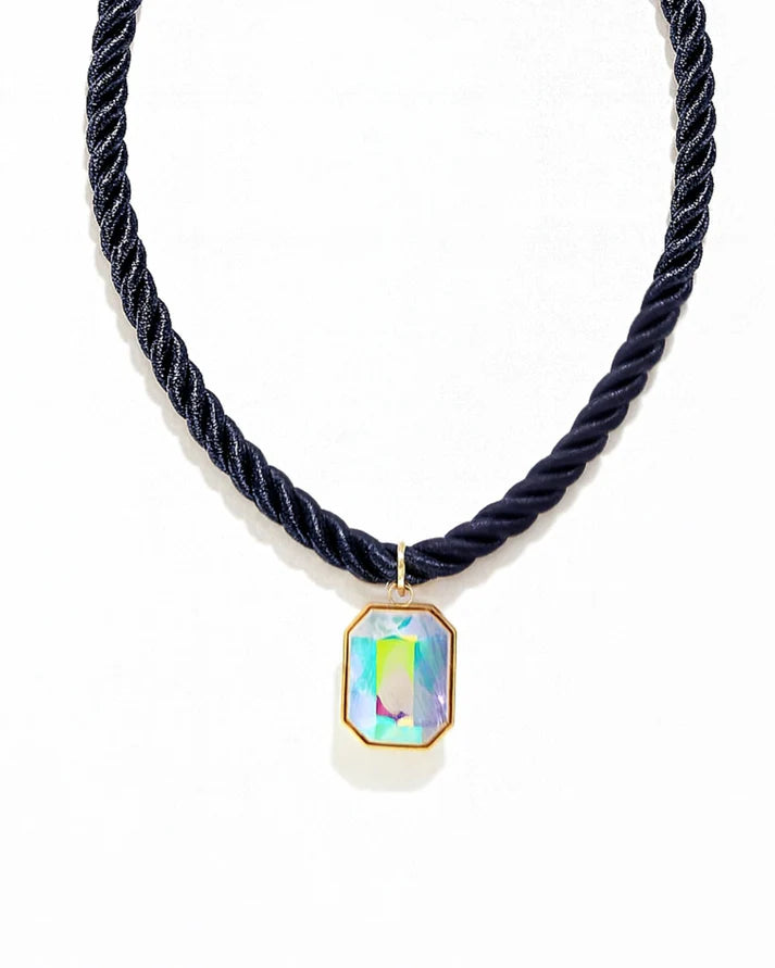 Make a bold and versatile statement with the Tailyn Rope Necklace in Navy. This piece pairs a rich navy rope chain with a dazzling iridescent gemstone pendant, creating a chic balance of sophistication and modern flair. The 15–18 inch adjustable length with a 3-inch extender ensures the perfect fit, while the lightweight design makes it comfortable for all-day wear. Finished with a gold-tone bezel setting, this necklace is both stylish and durable.