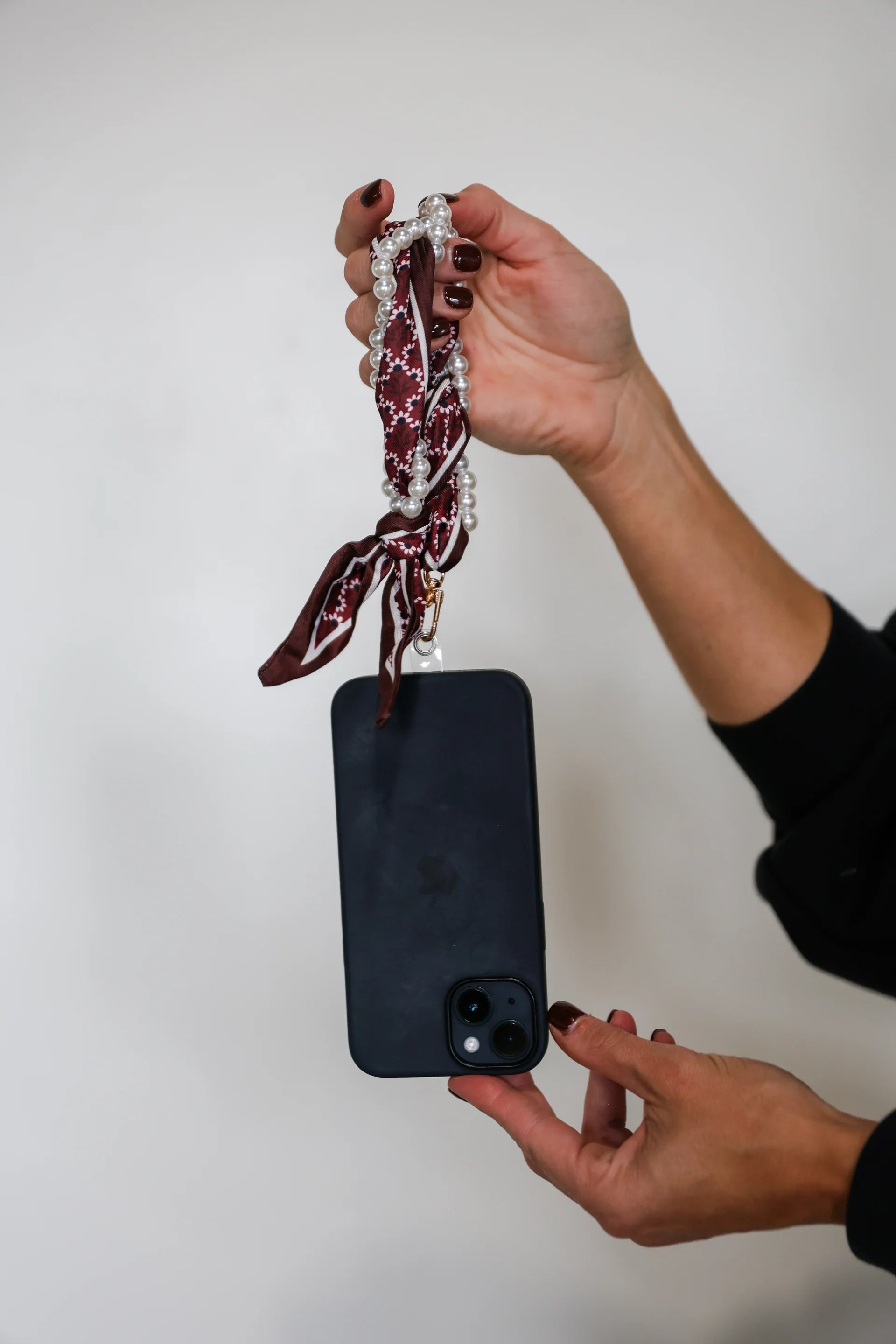 Victory Lap Woven Scarf Pearl Phone Strap/Wristlet - Maroon