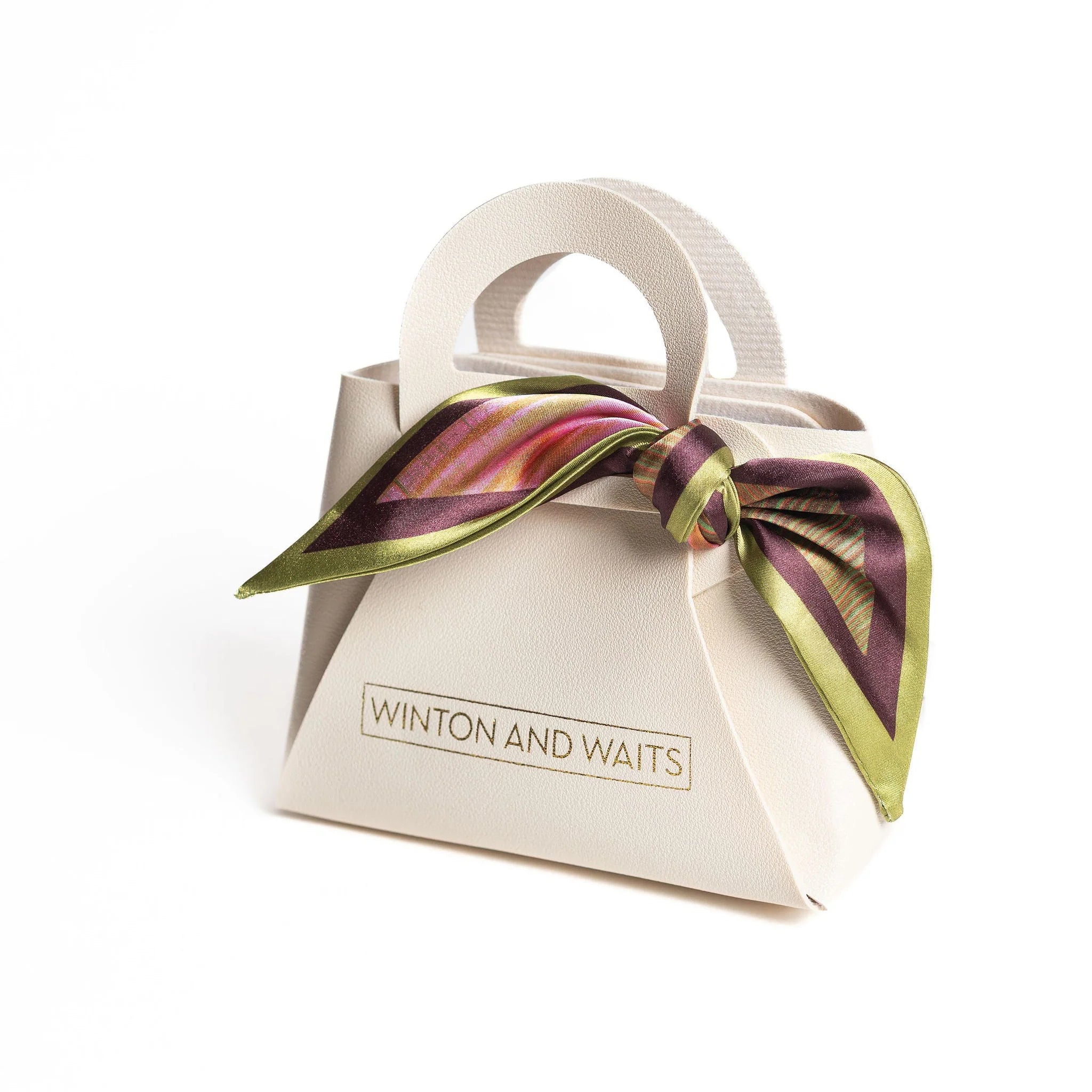 Packaged in a giftable mini WW branded bag. Each scarf comes with a QR code for styling videos.