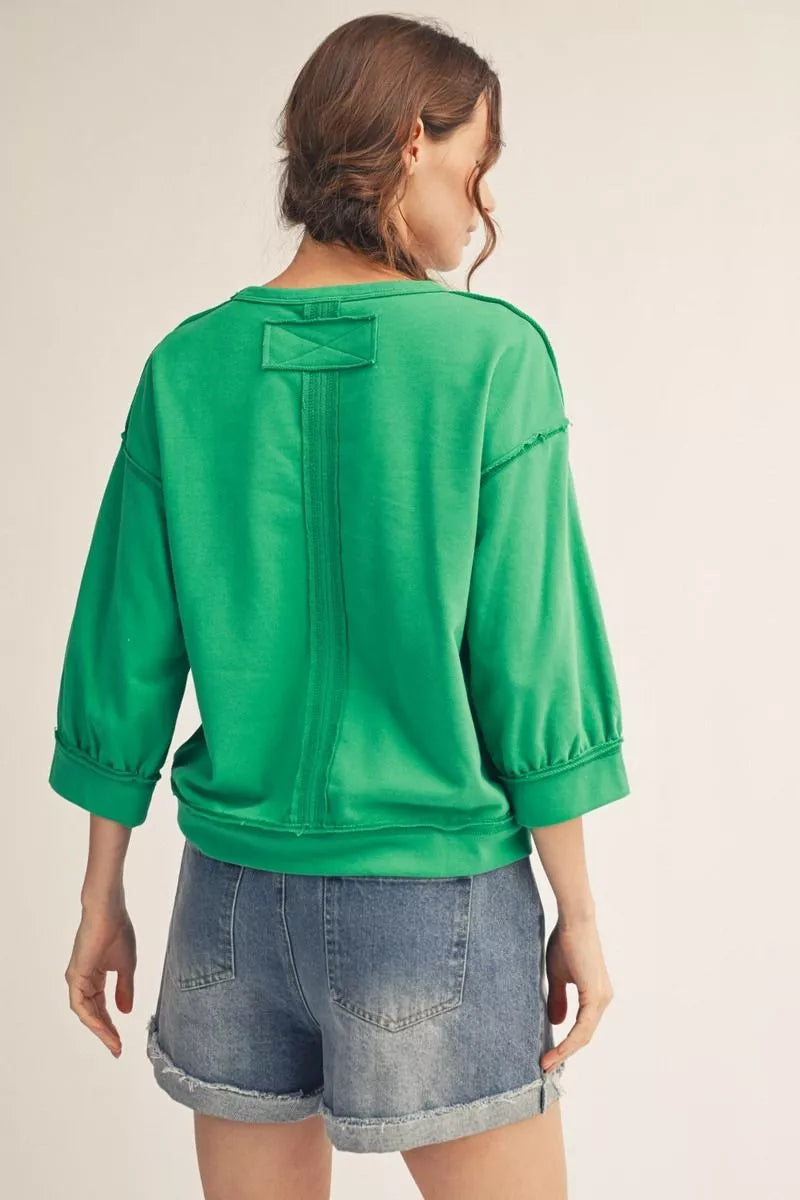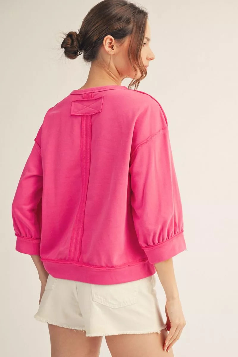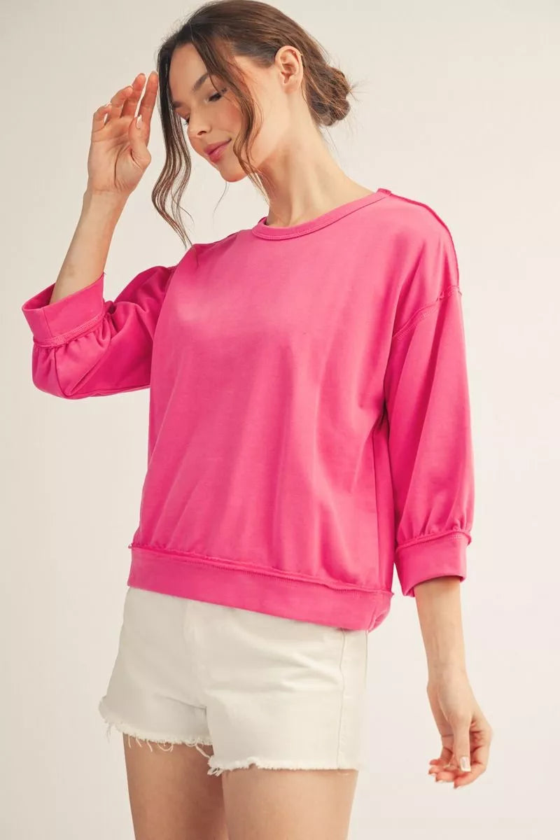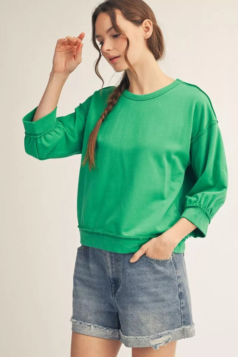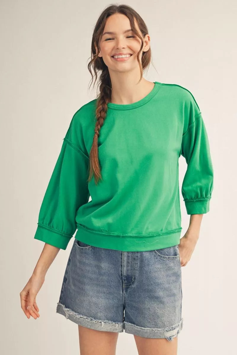 Bestselling 3/4 Sleeve Washed Raw Edge Detail Top
