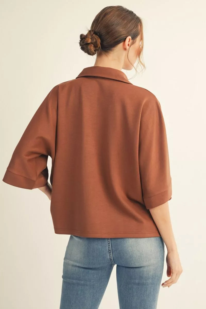 Scuba Vneck 3/4 Sleeve Top