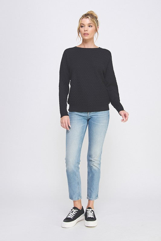 Soft Fine Gauge Herringbone Textured Dolman Sweater
