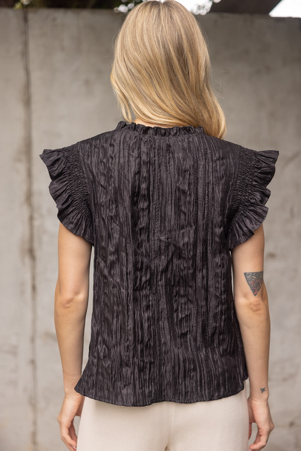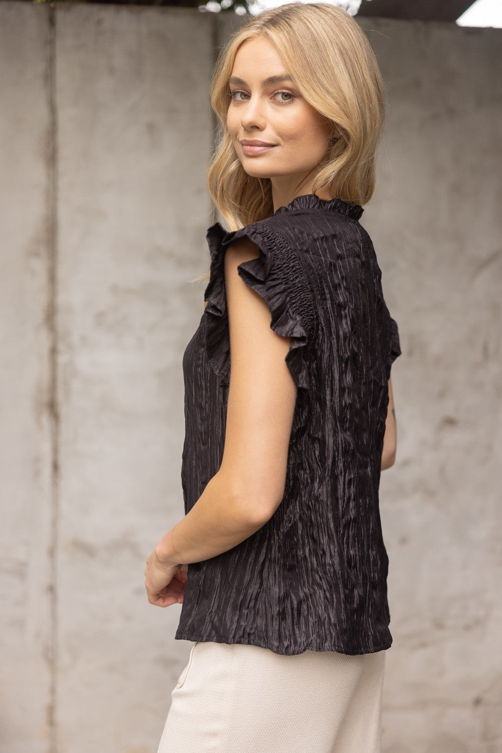 Black Crinkle Texture Blouse