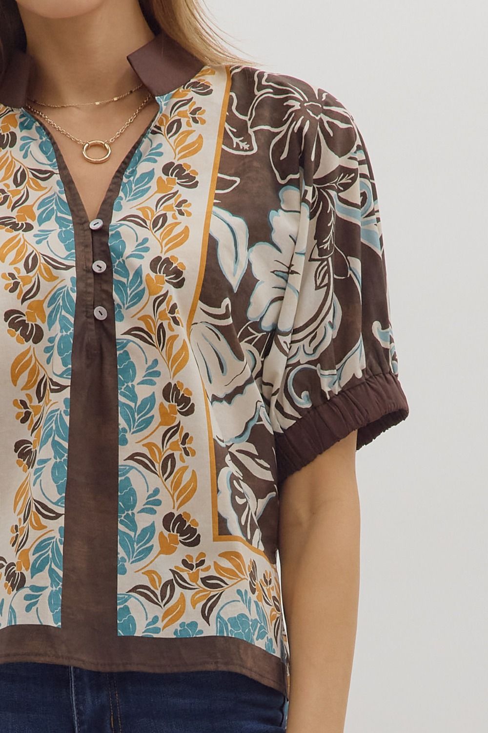 Chocolate Trim Floral Blouse