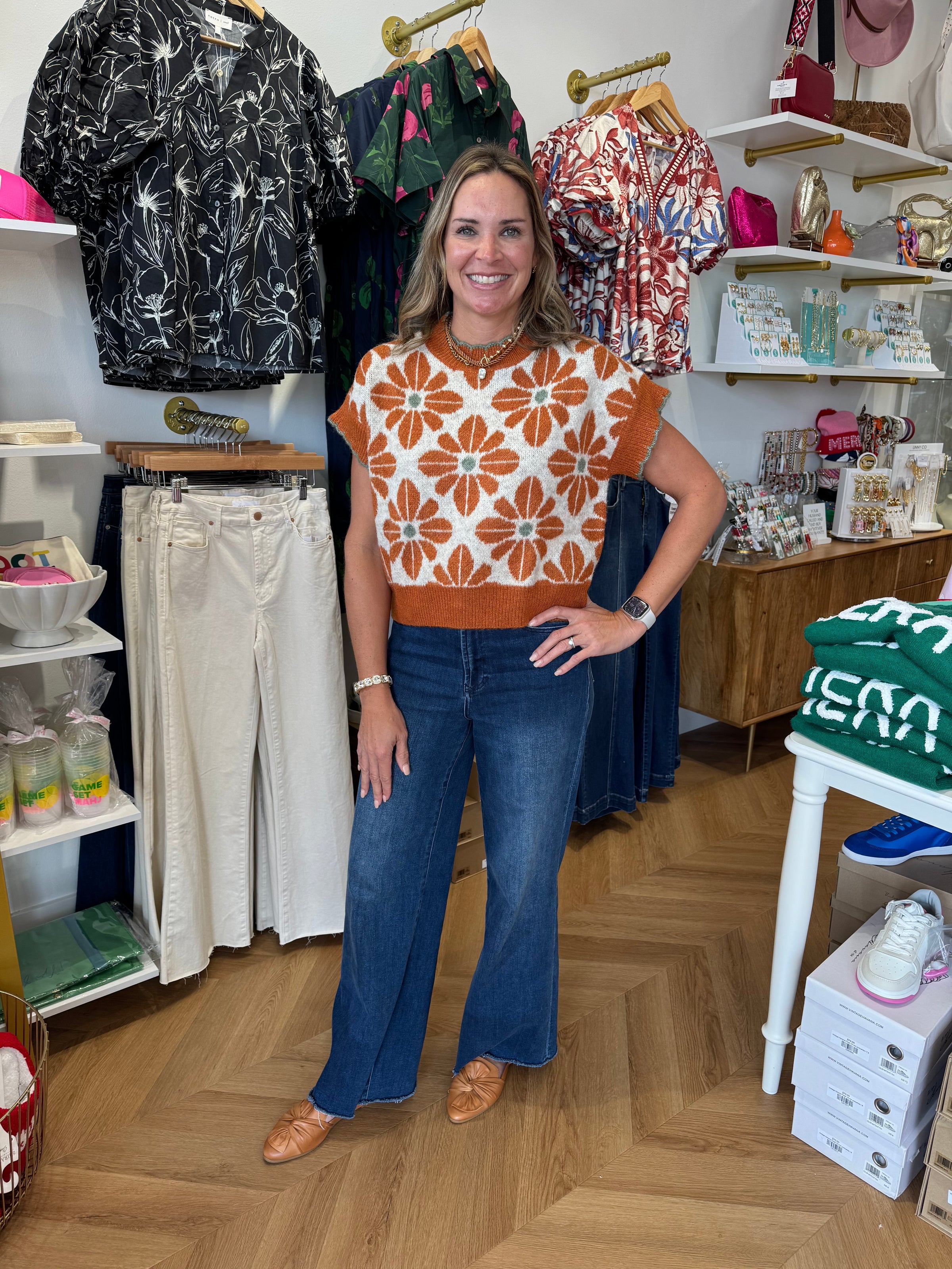 Floral Cap Sleeve Sweater