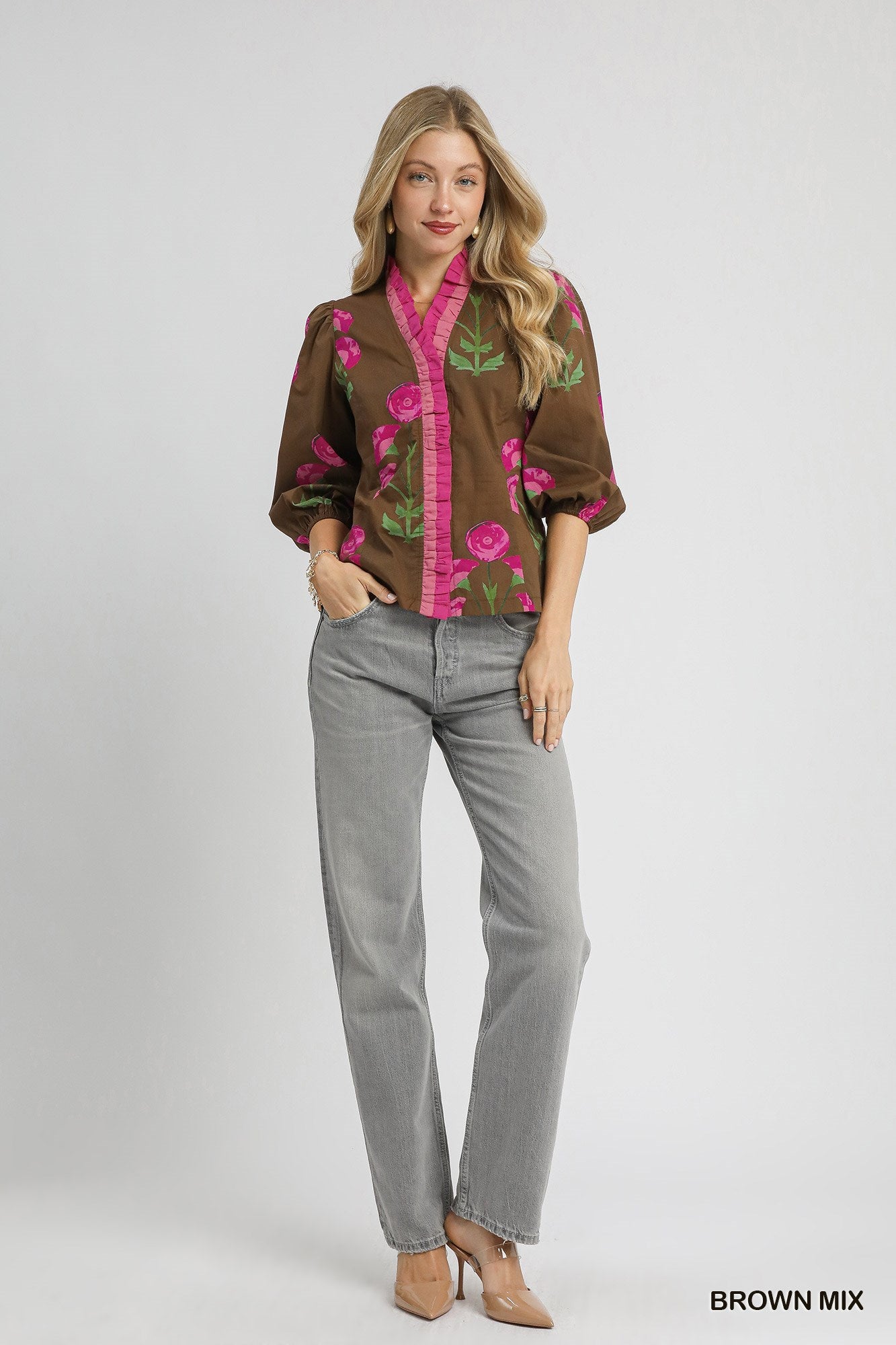 Umgee Floral w/ Ruffle Trim Detail FINAL SALE